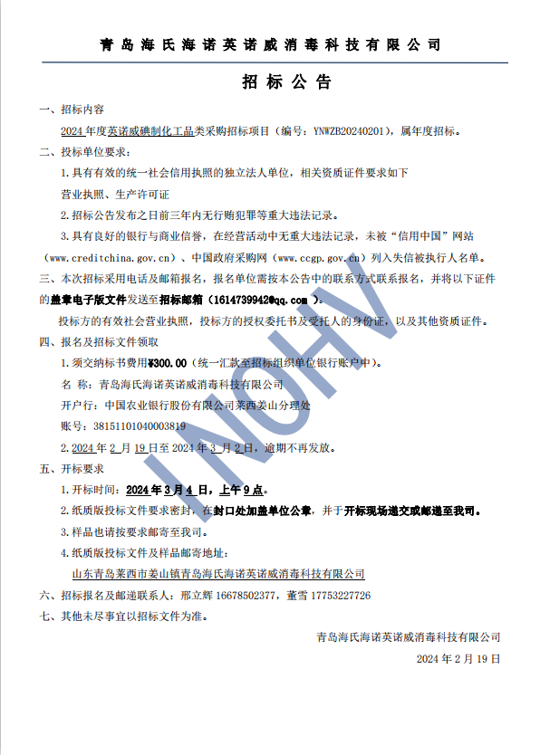 (2024)年度英諾威公司(碘制品)類采購招標公告