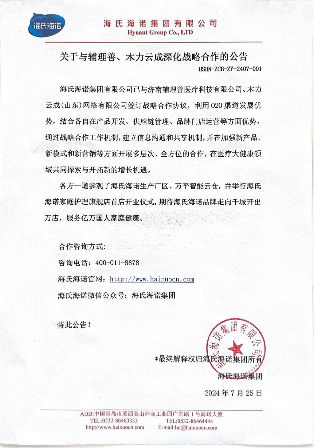 關于與輔理善、木力云成深化戰略合作的公告